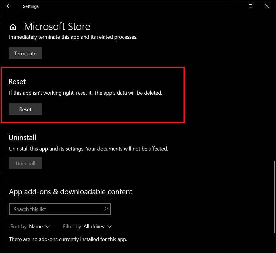- 完成该过程后,尝试打开 Microsoft Store 并查看是否修复了错误。