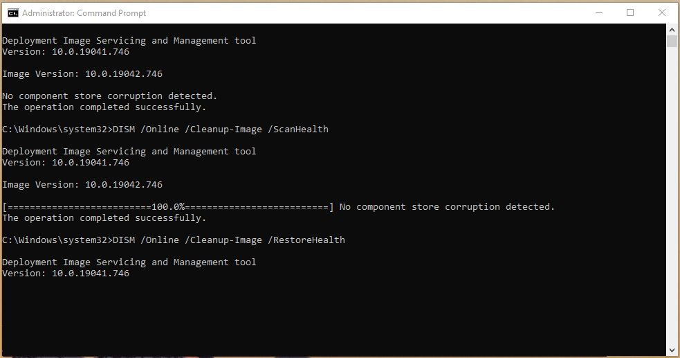 - DISM 工具将开始该过程并扫描损坏的文件。此外,在此过程中,它还将修复损坏的文件。