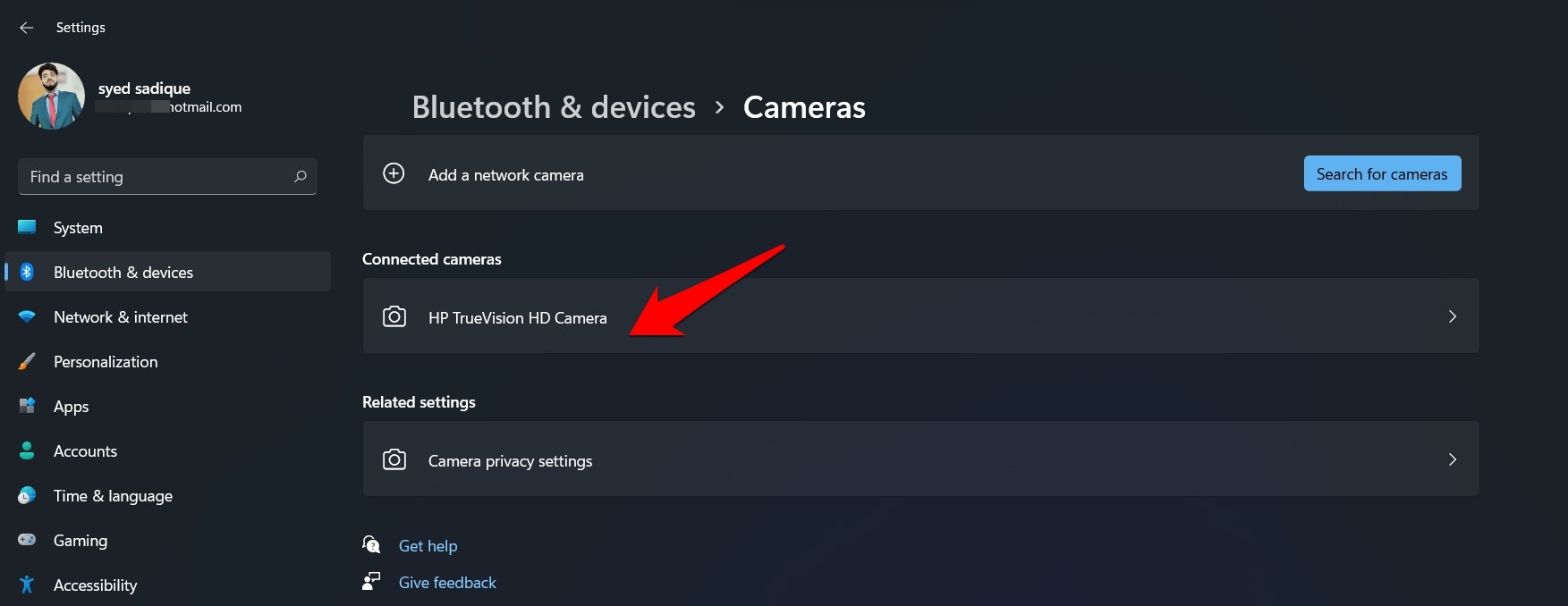 - 现在转到“已连接的摄像头”部分并从列表中选择您的网络摄像头。