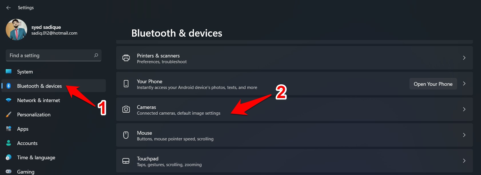 - 然后从左侧菜单栏中转到蓝牙和设备部分。