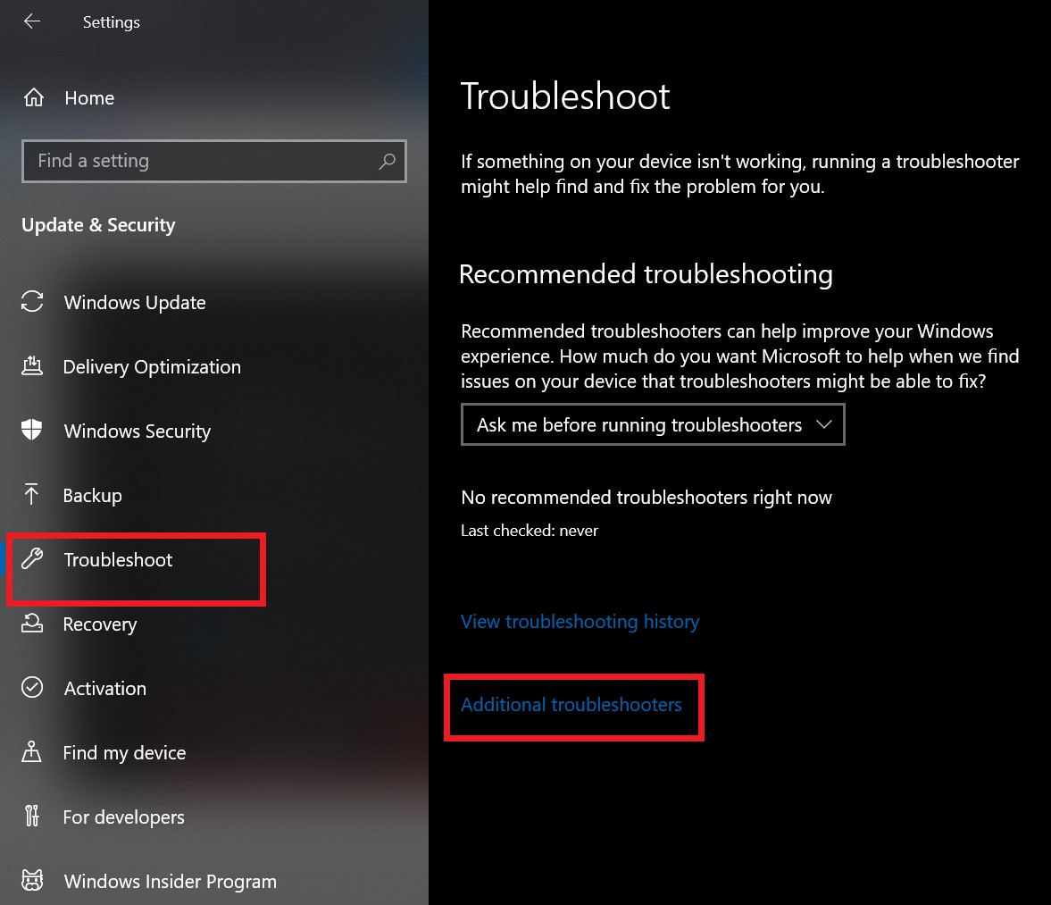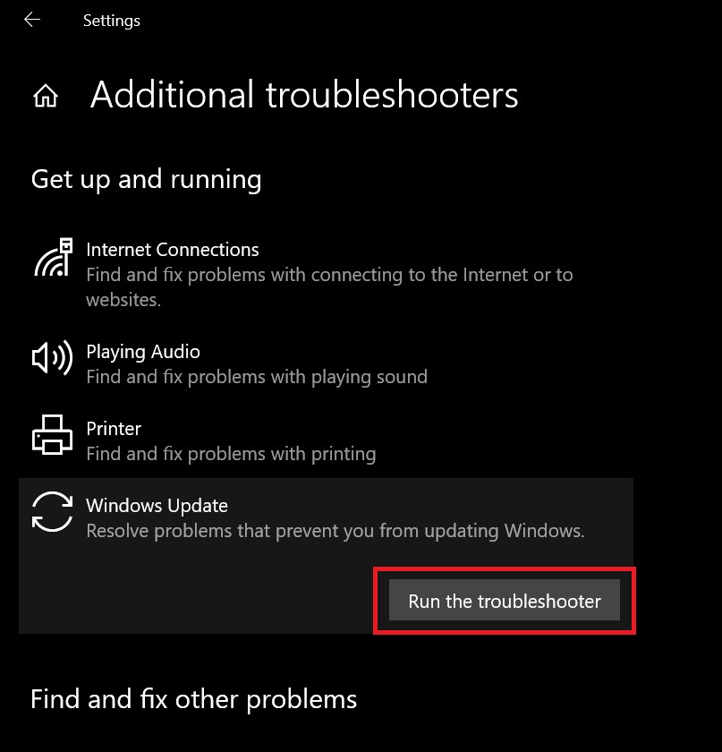 - 在同一屏幕上,您可以看到一个选项,其他疑难解答。点击它