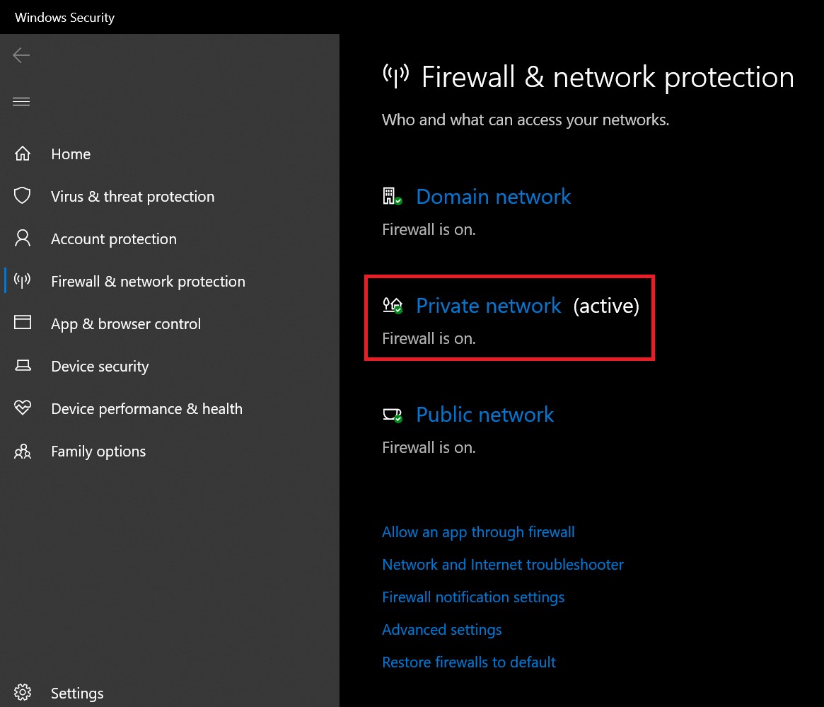 - 默认情况下,Microsoft Defender 防火墙将设置为开。