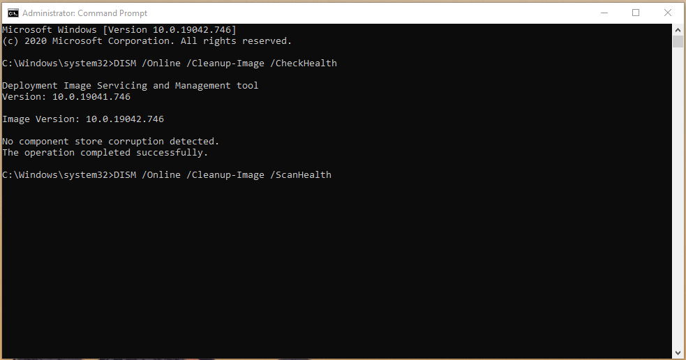 - 键入Dism /Online /Cleanup-Image /ScanHealth