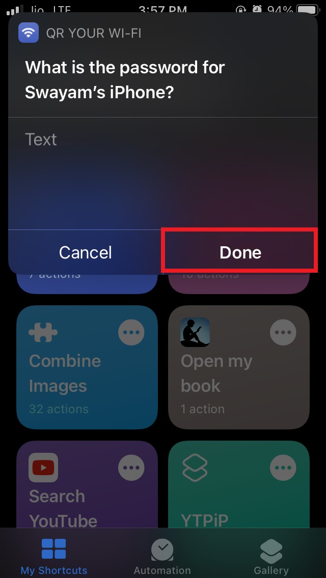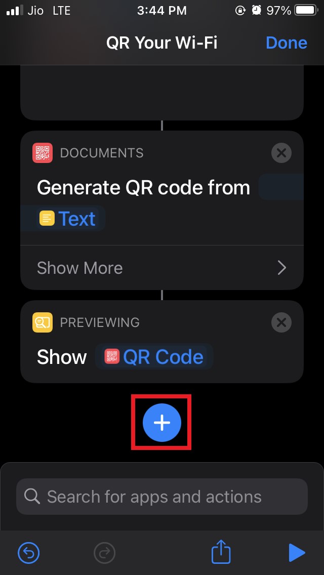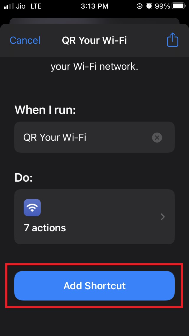 现在,您必须对 QR Your WiFi 快捷方式进行一些更改。