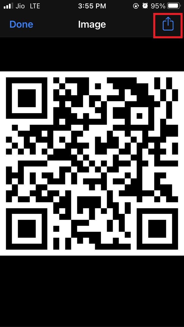 - 您可以与希望通过 WiFi 共享互联网的用户共享 QR 码,而无需泄露 WiFi 密码。您必须点击二维码上方的共享按钮。