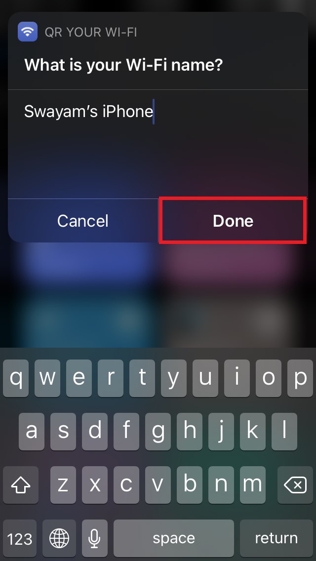 - 输入iPhone的默认 WiFi 名称。然后按 Done进入下一步