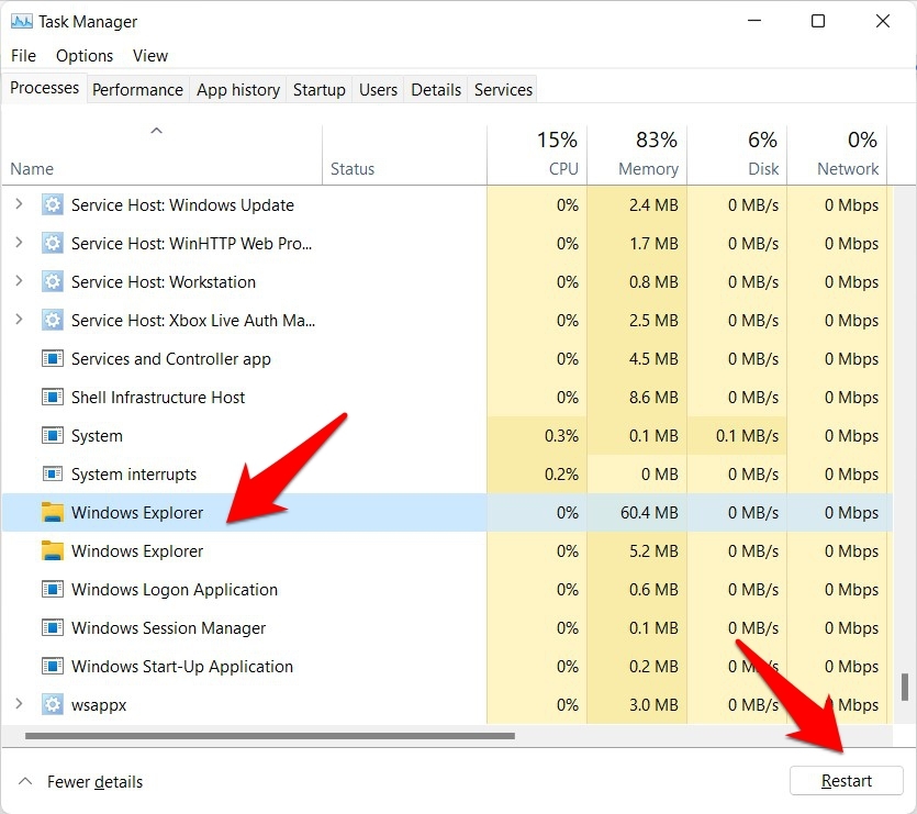 然后选择 Windows 资源管理器,然后点击位于右下角的重新启动按钮。这应该可以解决根本问题。除此之外,如果您有任何老虎疑问,请在下面的评论部分告诉我们。