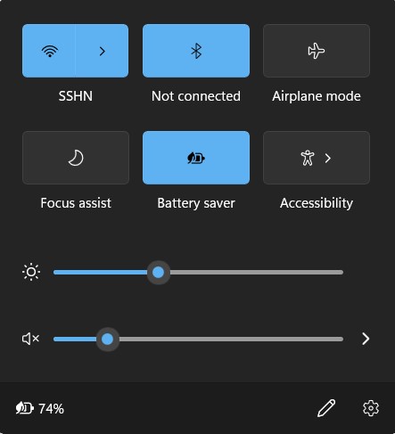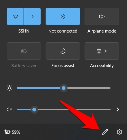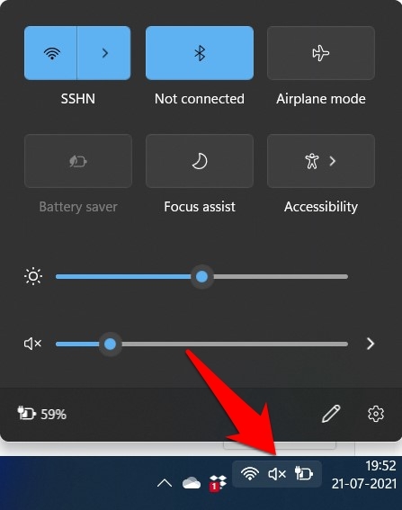 - 首先,通过单击任务栏上的 WiFi、音量或电池图标来调用操作中心。