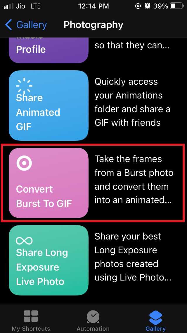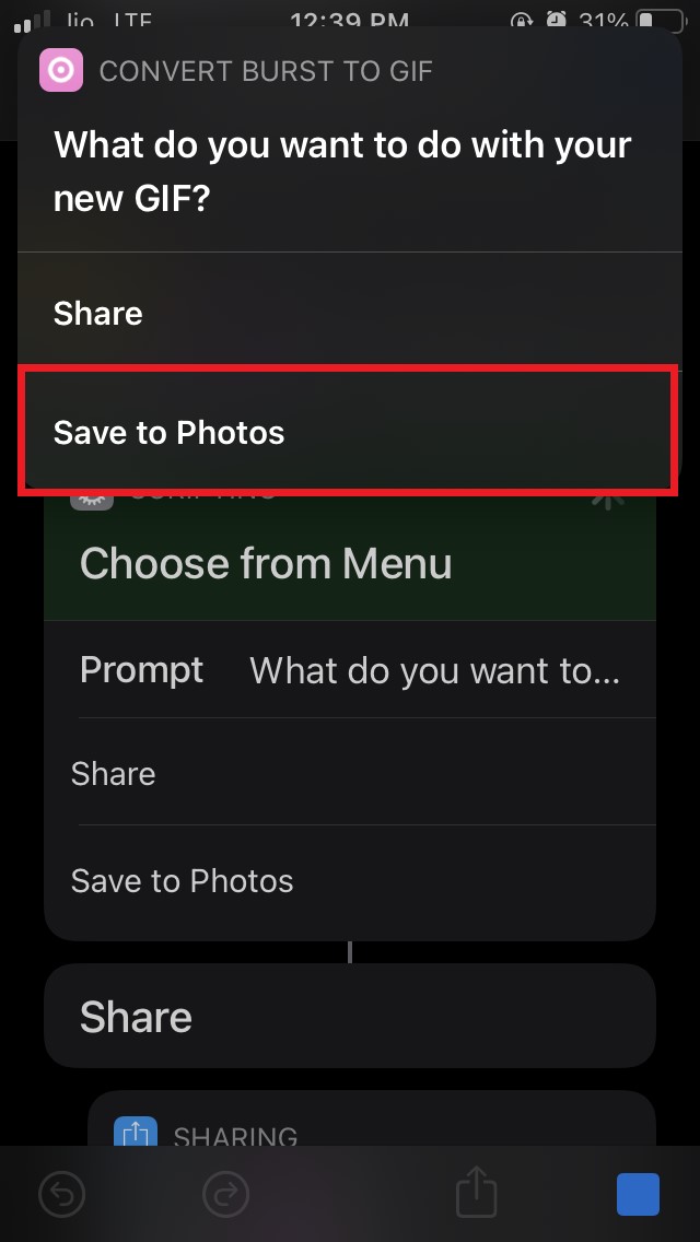 - 您现在可以看到将连拍转换为 GIF快捷方式选项。点击它。