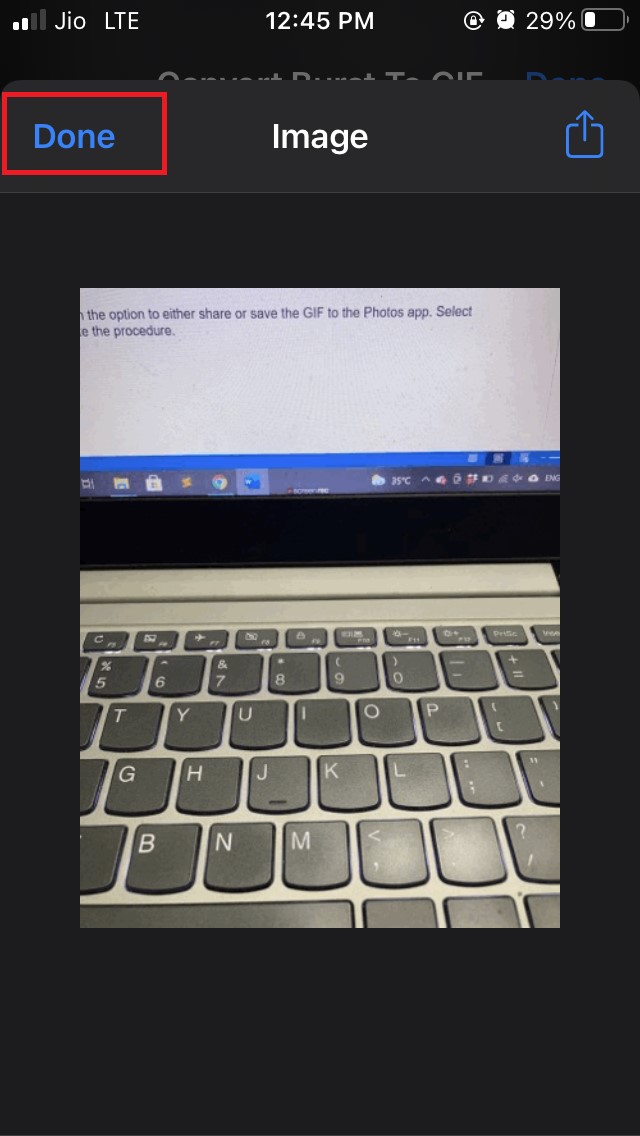 - 您会立即在屏幕上看到连拍照片的 GIF 动画。