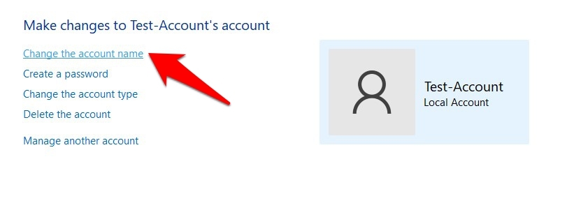 - 现在选择您要更改名称的帐户,然后单击更改帐户名称。
