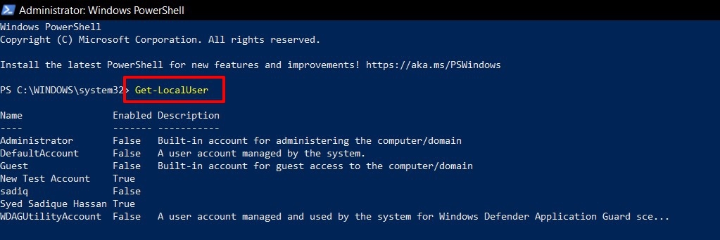 - 然后复制粘贴以下命令以获取所有本地用户帐户的列表: