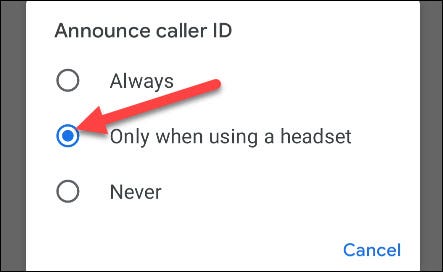 - 仅当使用耳机时:只有在您使用某种耳机时才会通知来电者。