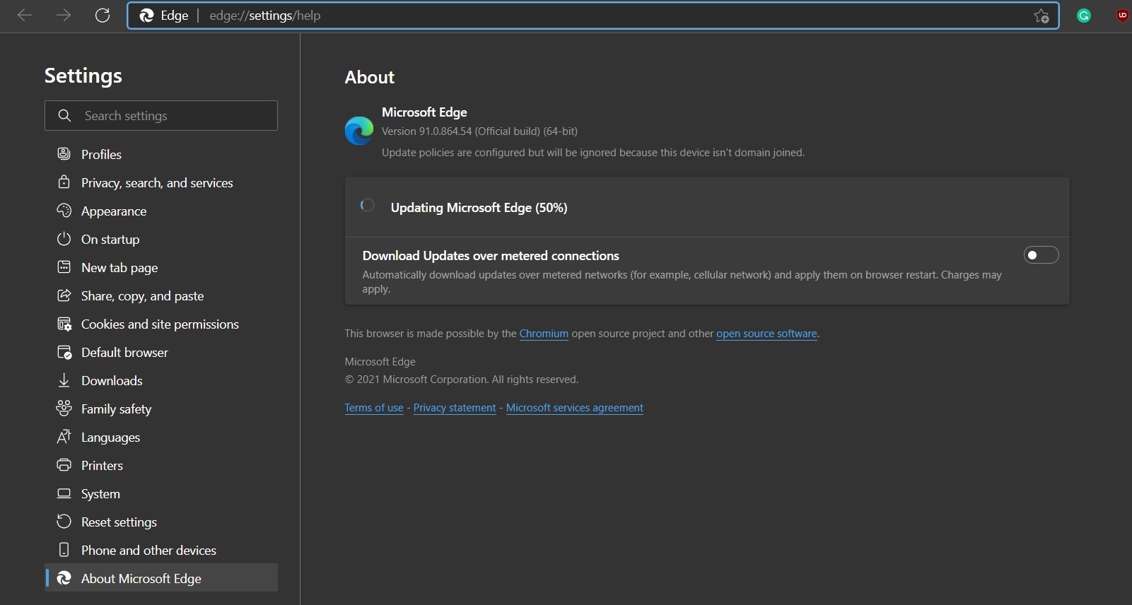 - Edge 将自动检查可用更新并立即下载。