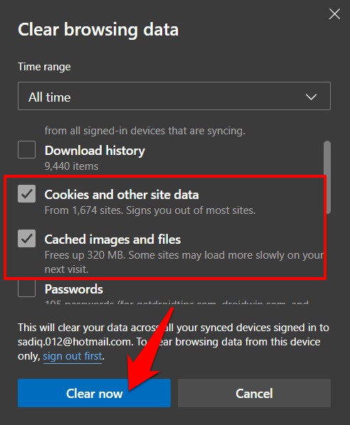 - 选择Cookie 和其他站点数据以及缓存的图像和文件。