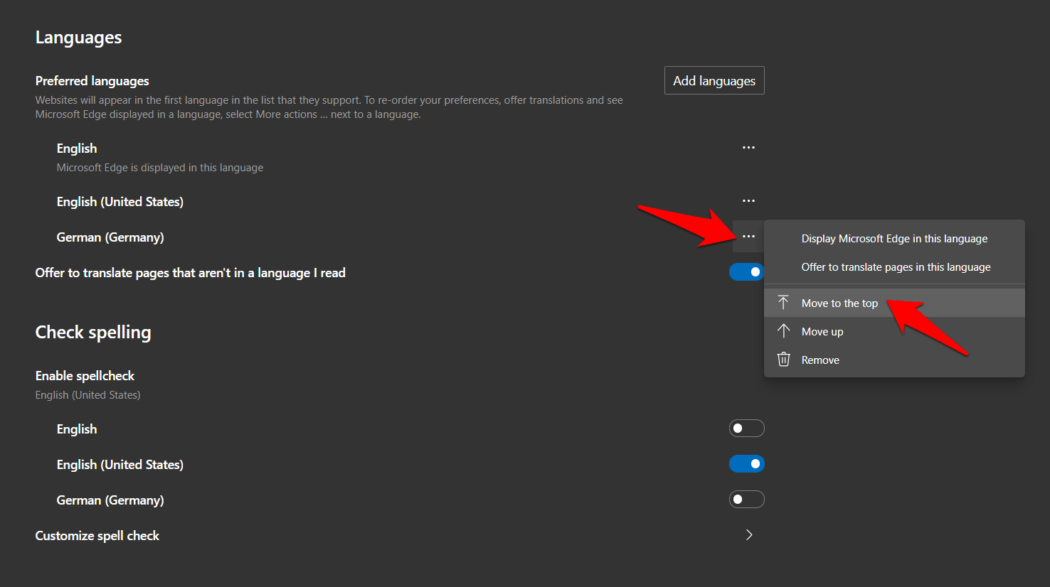 位于您的语言旁边,然后选择移至顶部。