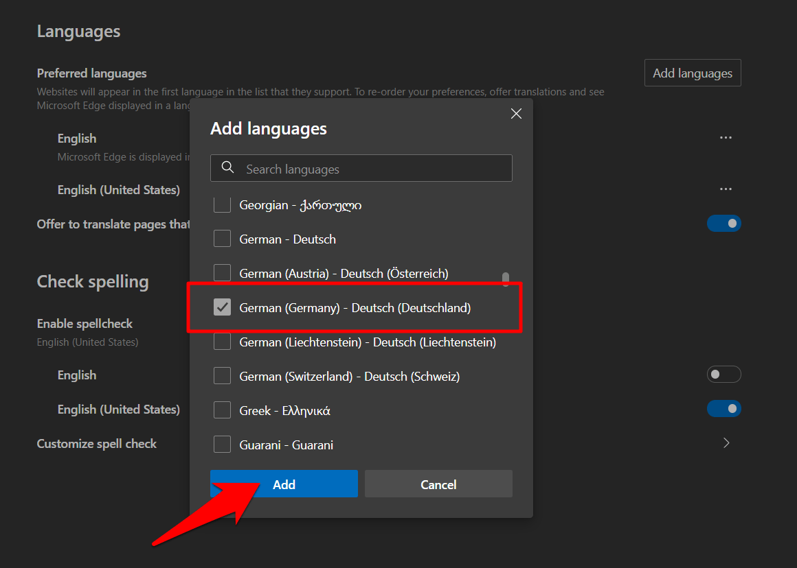 Microsoft Edge 具有允许更改菜单、选项、通知语言的内置功能。我们可以添加多种语言并选择偏好。