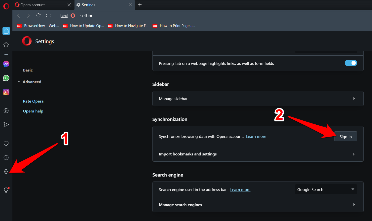 - 使用您在计算机上创建的同一Opera 帐户登录。