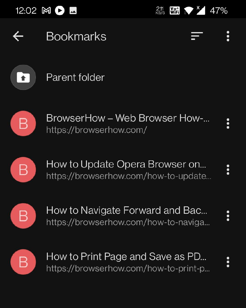 - 您将看到所有Opera 计算机书签已同步到浏览器的移动版本中。