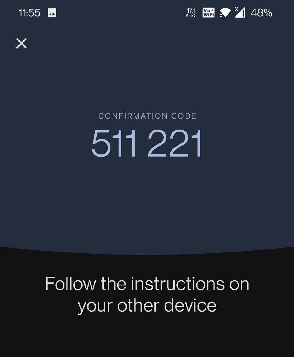 Opera 将在移动屏幕上显示安全代码。确保它与计算机屏幕上显示的一致。