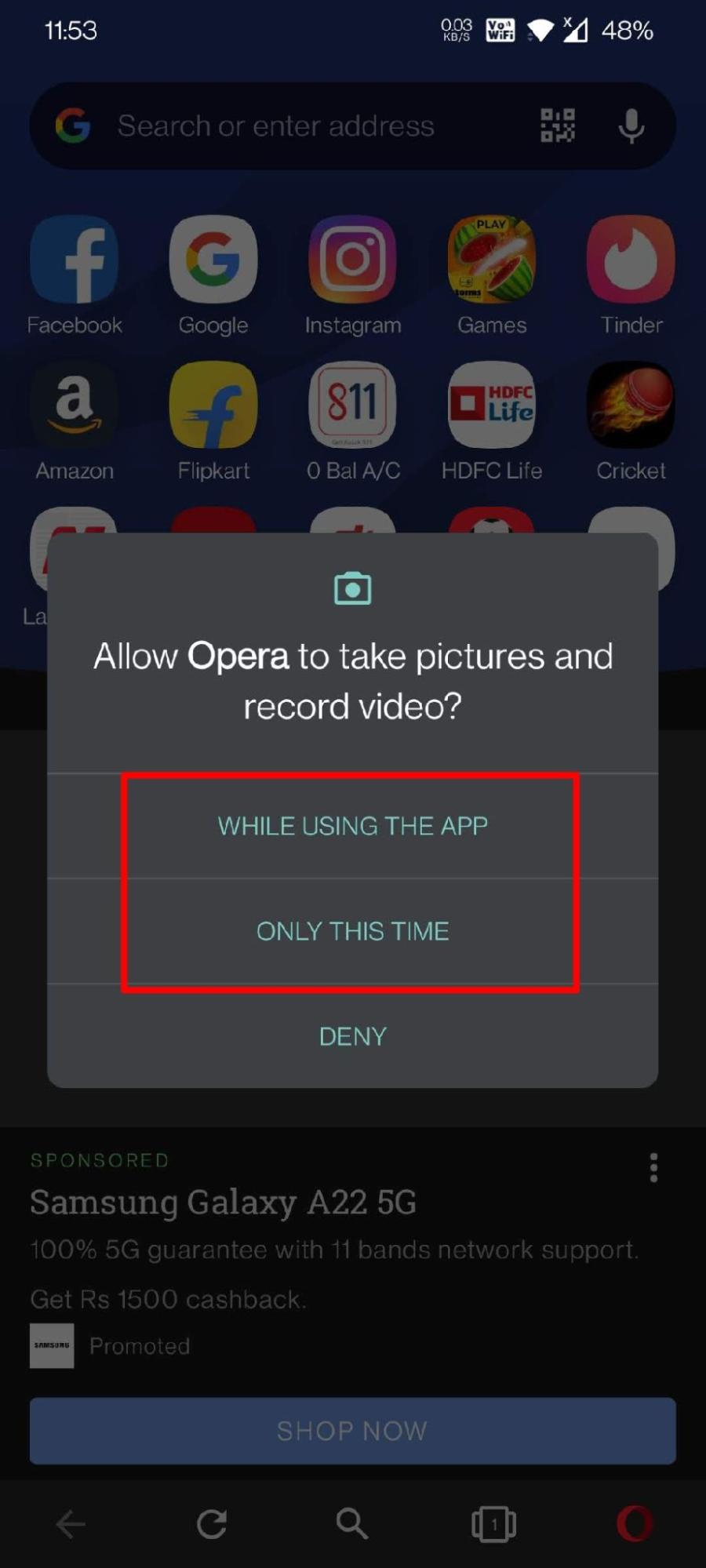 它将要求相机允许扫描代码。 - 允许 Opera访问相机权限。