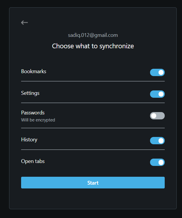 现在我们已经创建了 Opera 帐户,我们可以使用这些帐户详细信息在不同的设备上登录。我们可以使用相同的凭据登录到 Opera mobile 并启用数据同步。