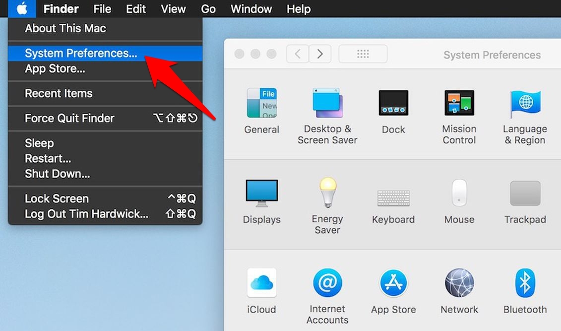用于菜单列表。 - 从菜单中选择系统偏好设置。