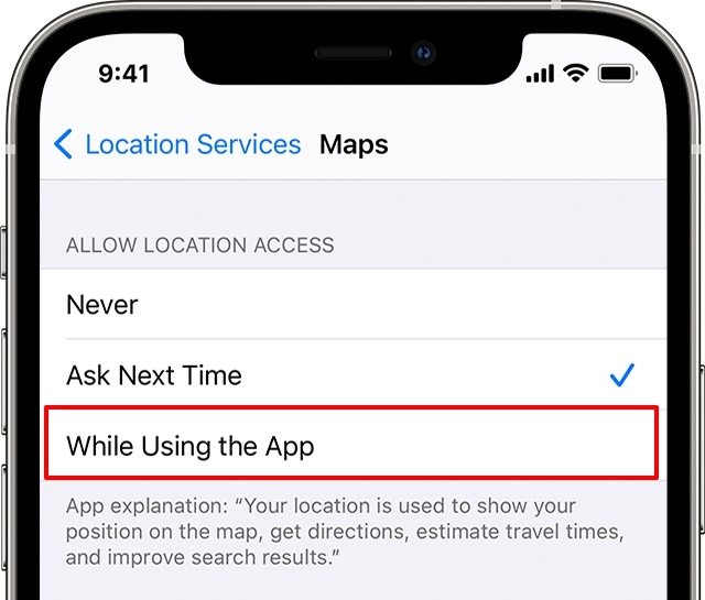 该时使用应用程序选项将一个应用程序正在积极地使用你的位置每次都通知您。因此,您将始终能够在跟踪您的应用程序上保持标签,然后您可以相应地决定下一步行动。