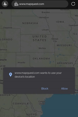 如果您打开切换按钮,则启用位置服务。每当您与需要您的位置的任何站点进行交互时,它都会向您发送提示。然后,您可以通过点击相应地决定 要么 命令按钮。