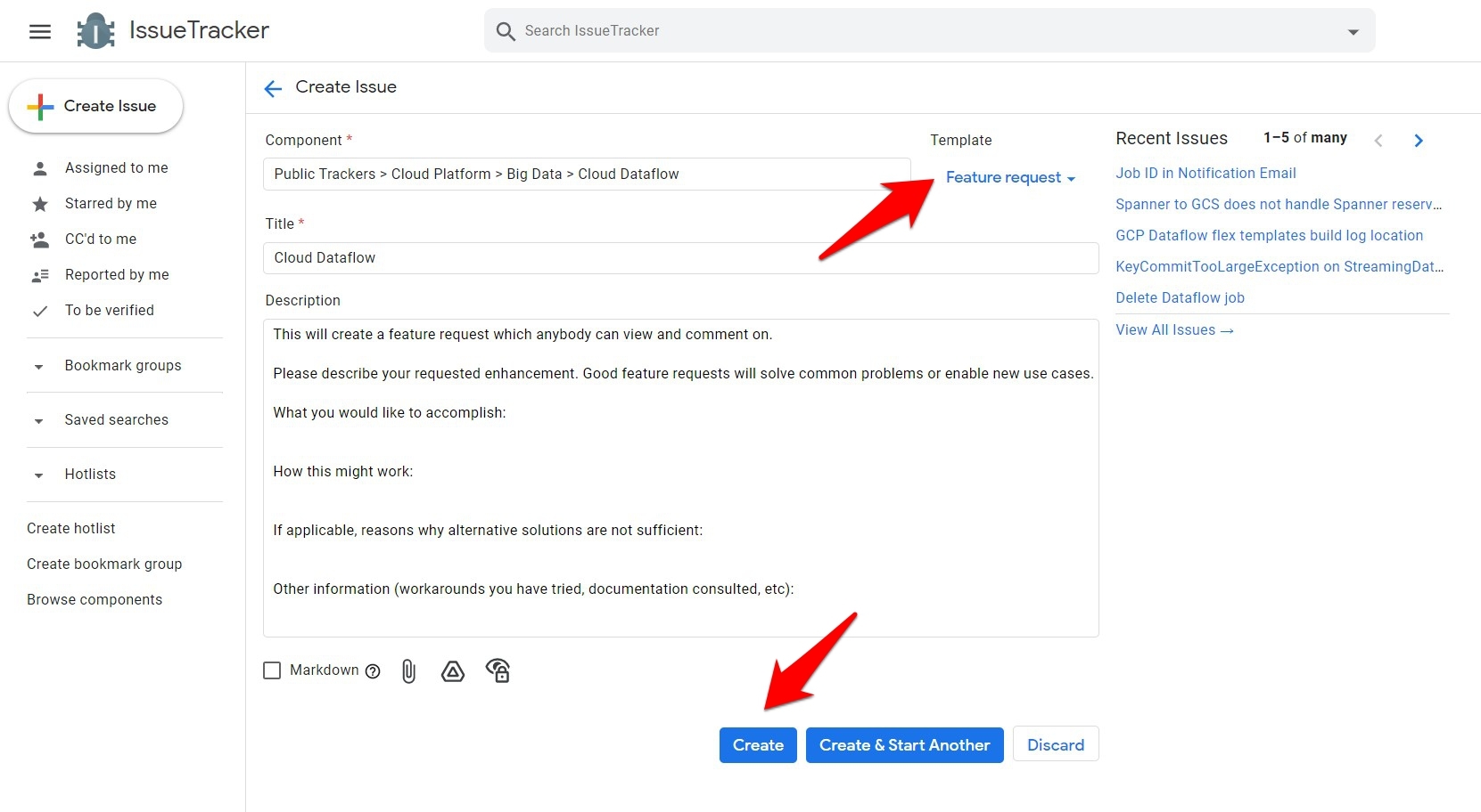 但是,如果错误或您的功能请求尚未在他们的数据库中列出,那么您可以继续并创建一个新的。