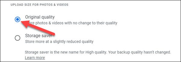 这会将您直接带到 Google 相册设置。如果您还没有登录,请登录并选择上传质量选项之一: