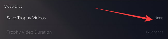 从下拉菜单中选择“无”,现在 PlayStation 5 将不会录制奖杯视频。