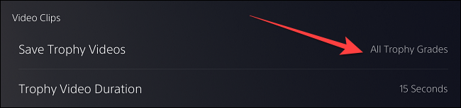 从右侧的“视频剪辑”部分,选择“保存奖杯视频”。该选项默认显示“所有奖杯等级”。