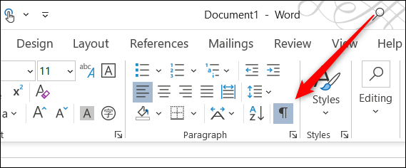 首先,打开包含要删除的节和/或分页符的 Word 文档。打开后,您需要找到文档中分节或分页符的确切位置。为此,请单击“主页”选项卡的“段落”组中的“显示/隐藏”图标。