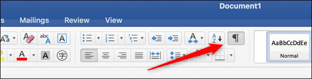 在 Mac 上,打开包含要删除的节和/或分页符的 Word 文档。您将需要能够找到中断的确切位置,因此单击“主页”选项卡功能区中的“显示/隐藏”图标。