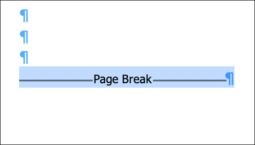 您现在将能够看到中断。接下来,单击并将光标拖到分节或分页符上以将其选中。选中时,中断将以灰色突出显示。