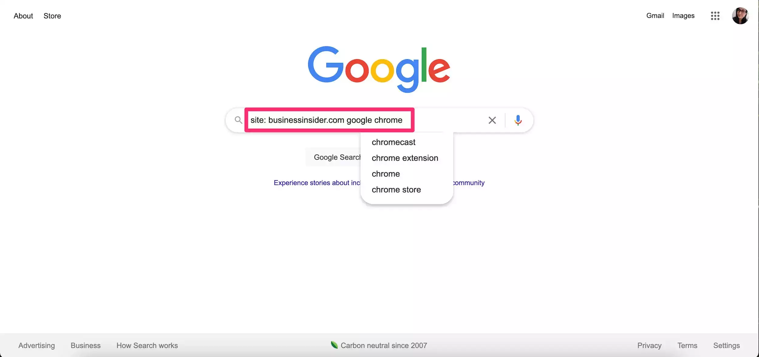 2.键入网站,然后你要搜索的网站,其次是一个空格,然后你的搜索词或短语的名称。