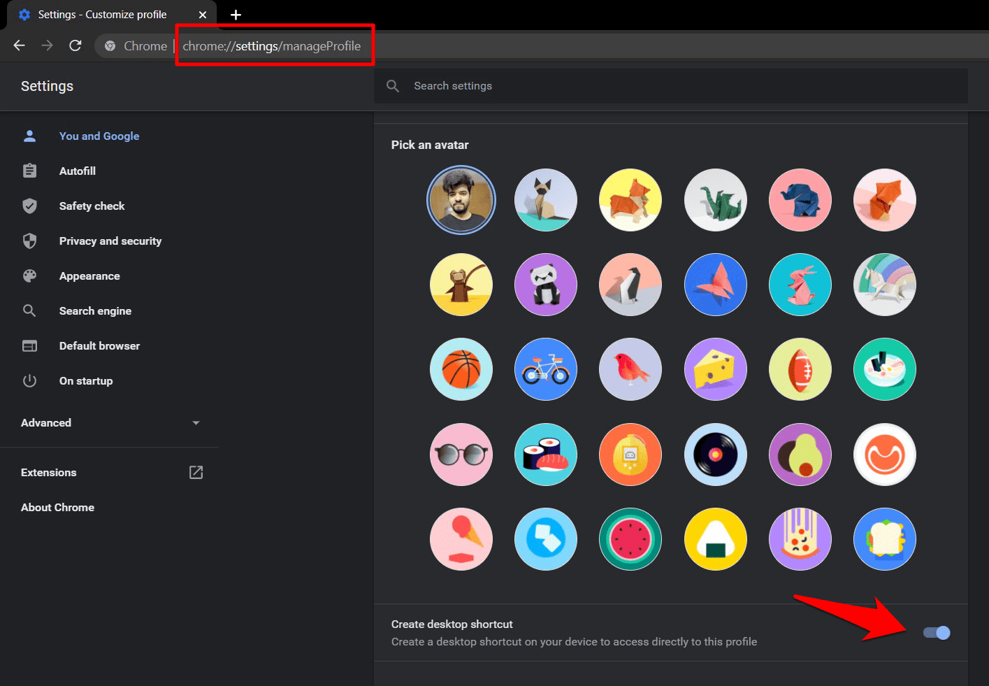 此外,您可以创建浏览器上所有用户配置文件的快捷方式。每个人都有自己的徽章和名字作为其独特的身份。