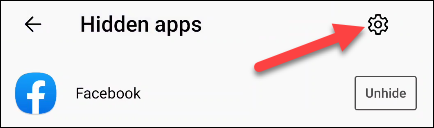 现在,如果您只想从应用列表中删除这些应用,您可以到此为止。如果您想更进一步,请点击“隐藏的应用程序”页面上的齿轮图标。