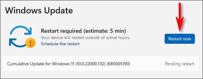 如果是重大更新,则可能需要重新启动。如果是这样,请单击“立即重新启动”,Windows 11 将关闭所有应用程序,然后重新启动并应用更新。完成后,再次登录,您就可以像往常一样使用 PC。