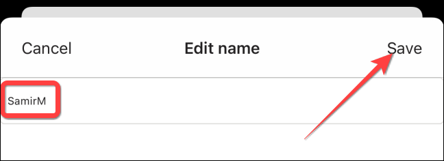 在 iPhone 或 iPad 上,您可以选择现有名称以打开一个菜单,让您输入新的显示名称。