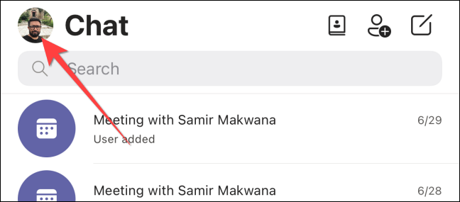 在您的移动设备上启动 Microsoft Teams 应用。点击屏幕左上角的个人资料图片。