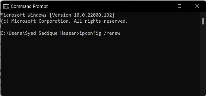 此错误的最常见原因之一是 Internet 协议配置不正确。在这方面,您的首要行动应该是放弃当前配置并更新其新实例。所有这些都可以直接从命令窗口本身进行,方法如下: