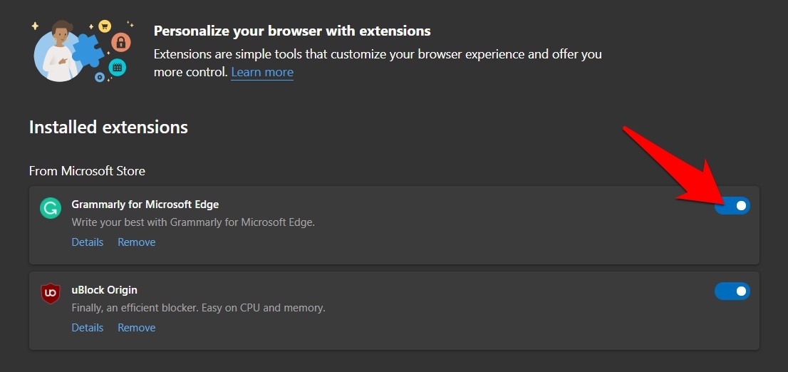 以下是禁用 Microsoft Edge 扩展的步骤: