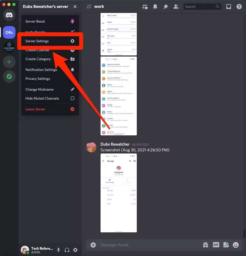 2.点击频道列表顶部的服务器名称,然后选择设置。如果您没有看到此选项,则您没有编辑服务器的权限。
