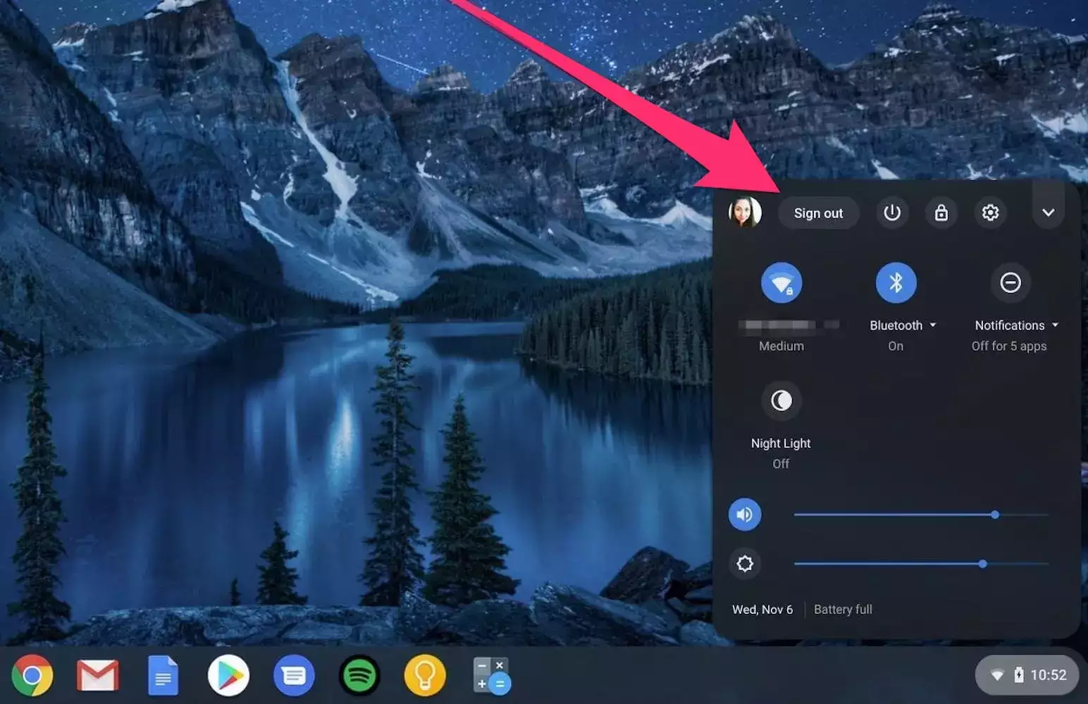 1.点击屏幕右下角的时钟并选择退出。
