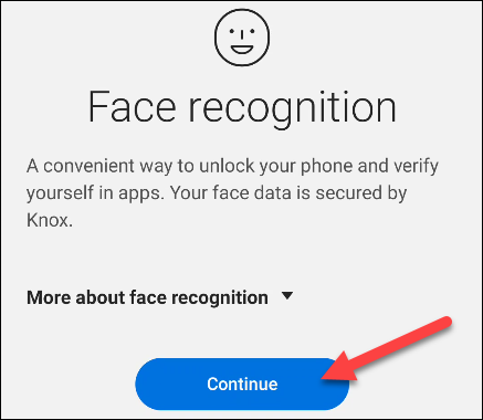 您将看到一些有关人脸识别的介绍性信息。点击“继续”继续设置。