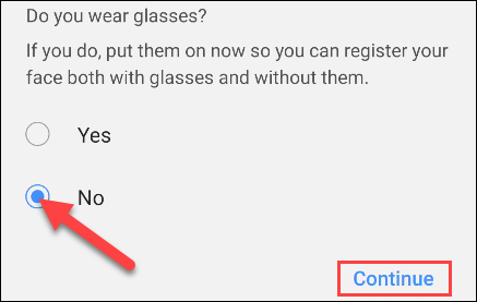 首先,你会被问到你是否戴眼镜。选择“是”或“否”,然后点击“继续”。