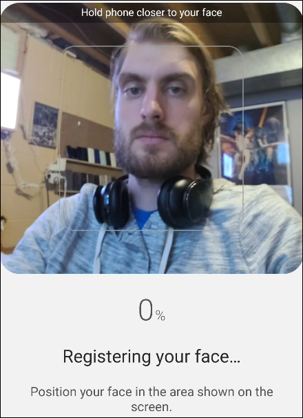 下一步是注册您的面部。举起相机,直到您的脸在画面中。它会很快扫描你的脸。