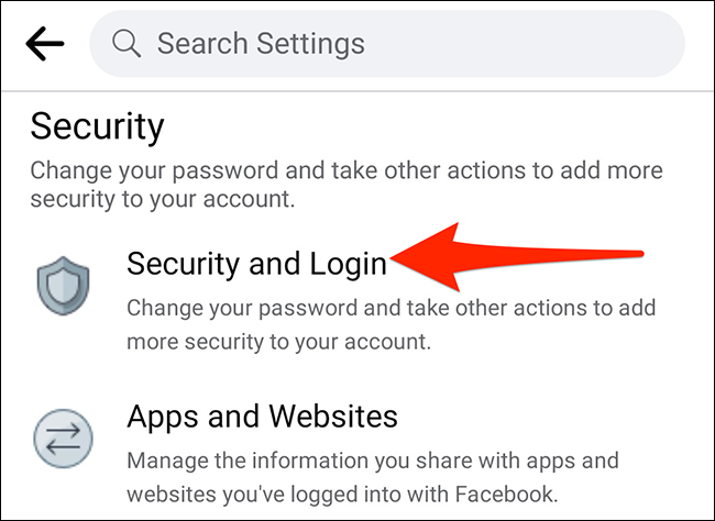 向下滚动“设置”屏幕到“安全”部分。在这里,点击“安全和登录”。
